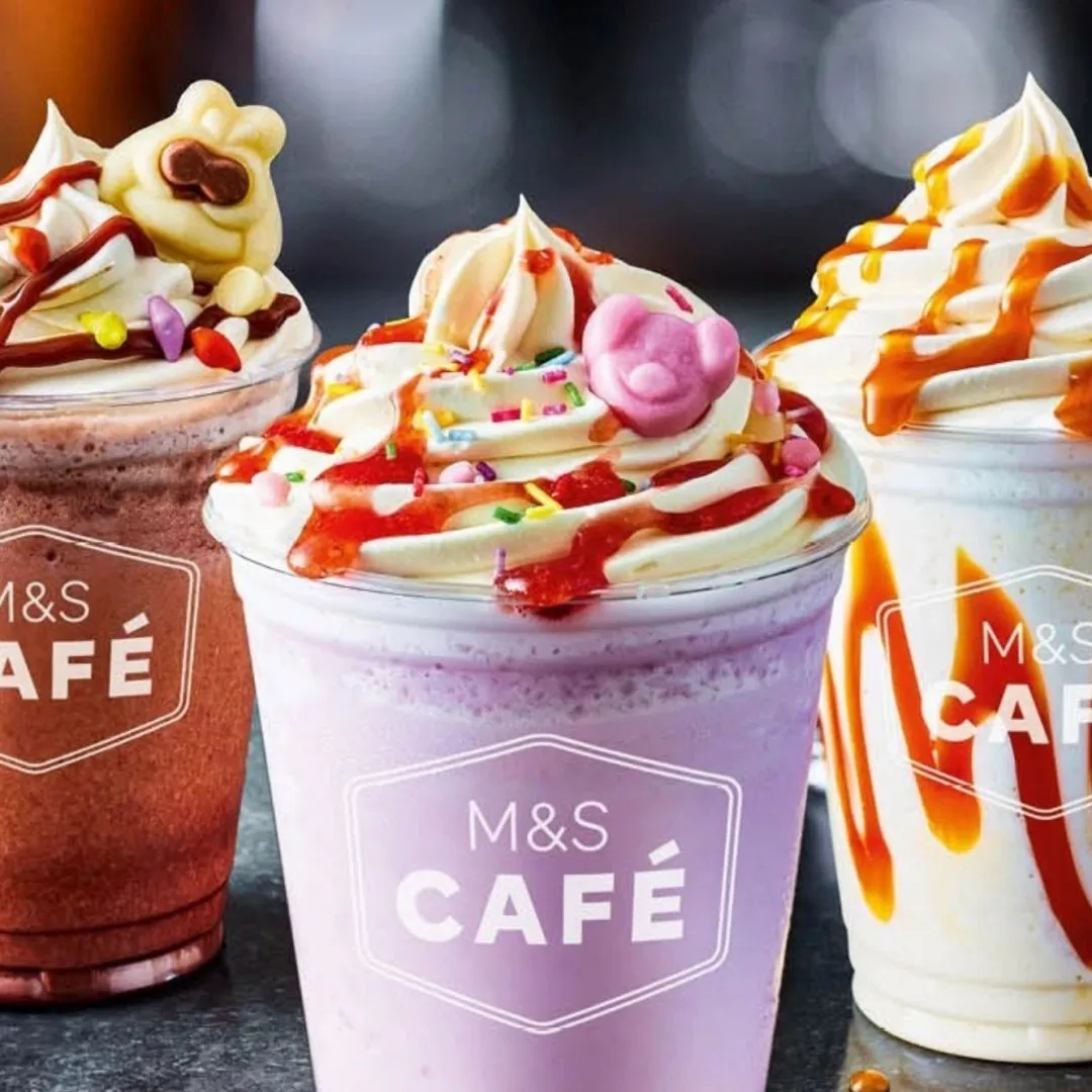 Iced options extend to afternoons. Biscuit crunch adds texture. The M&S Cafe menu most popular cafe choices spotlight shakes for treats.